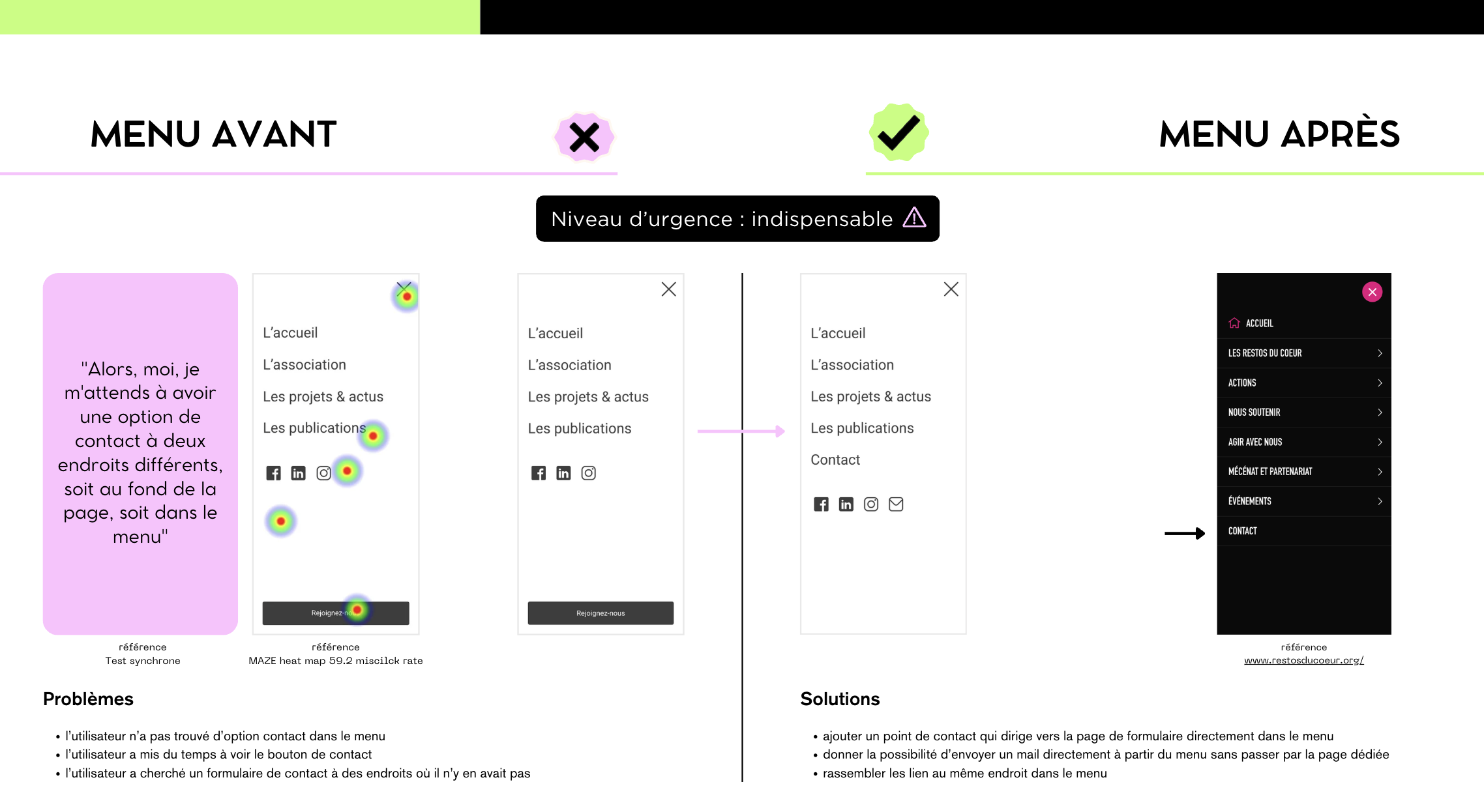 Les corrections apportés sont enrichies par un benchmarks de bonnes pratiques observées sur des sites ayant des enjeux en communs avec notre projet.