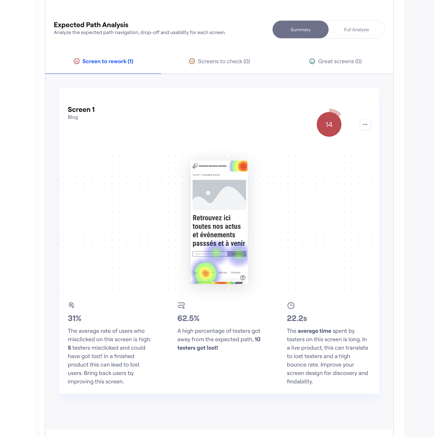 partir des résultats observés sur nos utilisateurs lors des tests nous mettons en avant des choses à changer absolument pour répondre à notre problématique ainsi que des éléments qui, bien que secondaires, seraient une amélioration bienvenue pour la prochaine itération.
